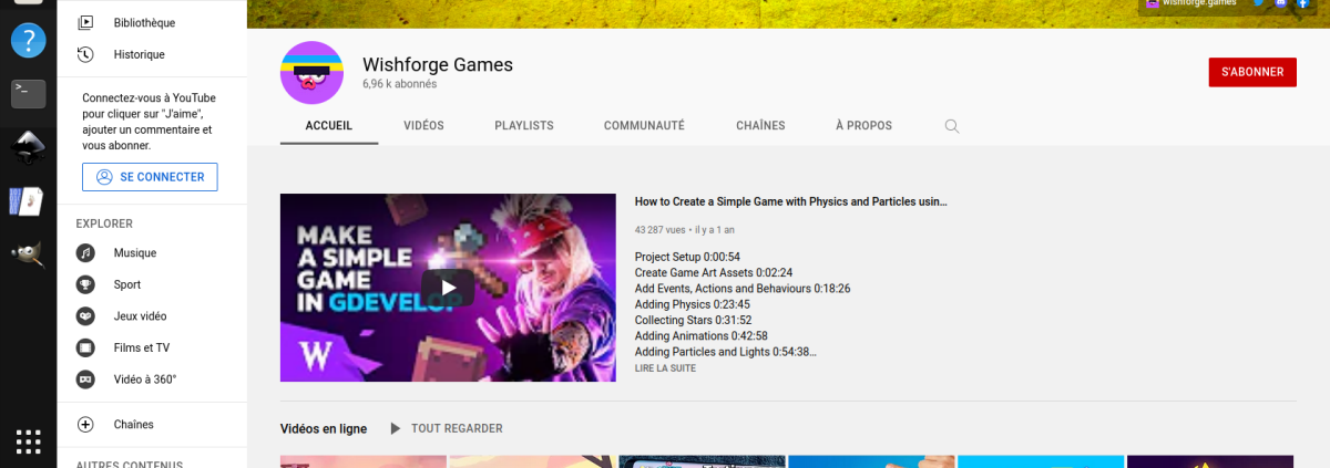 Wishforge Games est une chaîne Youtube qui fais des vidéos sur la création de jeux sur Gdevelop comme le fais la chaîne Youtube Gdevelop. Mais ces vidéos sont plus approfondi et nous montrent plus de détaille sur la création de jeux vidéo.
